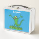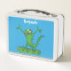 Funny green smiling animated iguana lizard metal lunch box