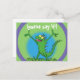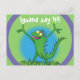 Funny green smiling animated iguana lizard postcard