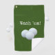 The perfect golf design for the perfect social distancing game of 2020. This has a cool green background with an image of 3 golf balls and the text says: Wash 'em! a funny whimsical design for the golfer in your life.