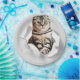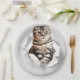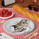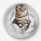 Funny Grey Cat Popping thru Torn Paper Illusion Plate