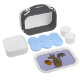The lunch box, custom faceplates, and interior snack containers are all great. What I don't like is that the custom ice pack and drink held in the exterior drink holder both condensate and leave a puddle under my sons lunch where it sits before lunch. My son is in preschool and likes this lunch box so we are sticking with it for now. The print colors and quality were perfect.