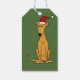 Fun Christmas gift tags with cute fawn greyhound puppy dog wearing Santa hat original art design. Can also add custom text and change background colour when ordering.