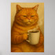 Meet the ultimate coffee companion: a delightfully unimpressed orange tabby cradling a hot mug, rendered in a lush vintage oil painting style. This funny cat coffee poster blends warm, retro tones with painterly texture to deliver instant cosy café vibes—perfect for your kitchen, coffee bar, home office, or dorm. The expressive “not-before-coffee” face makes it a daily dose of dry humour that still feels elevated and artful.
