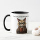 Start your day with a whole lot of mood and just the right amount of caffeine. This hilarious mug features a brown grumpy cat in a robe, clutching a steaming cup of coffee with messy fur, a death stare, and zero interest in small talk. Front reads Pawsitively grumpy before my first sip, followed by Now, I’m tolerable. Maybe.