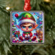 Adorable cute little grumpy elf making toys on a snowy Christmas day Christmas ornament.