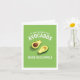 This 'get well' greeting card features a calming green background with white text that cleverly reads, "IF LIFE GIVES YOU AVOCADOS" at the top and "MAKE GUACAMOLE" at the bottom. In the centre of the card, there is a charming cartoon illustration of two halved avocados. One avocado faces upwards with a brown pit, while the other faces downwards with a brown pit. Both avocados showcase a light yellow and green skin, adding a pop of colour to the design. The drop shadow effect underneath the avocados adds depth and dimension to the overall look. 🥑🥑