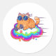 Funny Gym Cat Lifting Dumbbell on Rainbow Cloud Classic Round Sticker