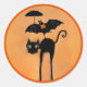 Funny Halloween Black Cat and Bat Classic Round Sticker