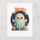 Funny Halloween Ghost Boo in Galaxy Postcard