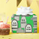 Get ready for some spooky fun with the Halloween gravestones on this paper.  Gravestones have names like "I.M. Scary", "Autumn Webb", "Candy Ghoul", "Wolf Howl", Jack O. Lantern", and more, with a green grassy background.
