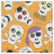 These skulls have a little bit of scary and a lot of cute! A pirate, a skull spooked by a spider, crossbones, candy corn, and colourful eyes make up the pattern on this orange Halloween fabric. Perfect for spooky Halloween costumes and other DIY projects. Original art © Anne Coffey.