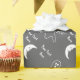 This image of a funny halloween ghost shouting boo! accompanies a happy smiling half moon. The pair of white Halloween images look great against the black background of this quality Halloween gift wrapping paper, I’m sure anyone who receives a Halloween gift wrapped in this cool and funny Halloween gift wrap will be pleasantly surprised. This is customisable spooky wrapping paper, you can personalise it with your own text.