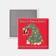 This funny cat hanging in a Christmas Tree might message to tired women, administrators of The Holidays, that they need to hang in there. It doesn't last forever even if it seems like it will. A bright holiday red Magnet with a cute message of encouragement might be just the smile she needs. "Hang in There" typography, personalised with a name and Holiday text is complemented by the funny tuxedo cat hanging from the Christmas tree illustration. It makes a great hostess gift or a gift to any Christmas mum you know.