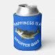 Your favourite bass fisher can keep his beverage of choice cool with this "happiness is a whopper bass" can cooler.