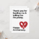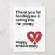 The “Thank You for Feeding Me & Telling Me I'm pretty. Happy Anniversary” design is a humourous and charming anniversary gift that reflects gratitude and love. It's perfect for anniversaries, weddings, milestones, and romantic relationships. The design is blank inside for a personal message, making it a thoughtful and cute gift for your partner.