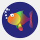 Funny happy fish classic round sticker