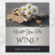 Wine label featuring daisy flowers with a key and hearts on a stylish silver background with your own funny texts. Beautiful for Valentine's Day or a romantic occasion.