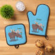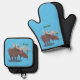 Funny happy moose cartoon illustration oven mitt & pot holder set