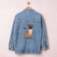 Funny happy pug dog cartoon illustration denim jacket