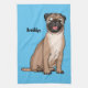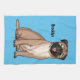 Funny happy pug dog cartoon illustration tea towel