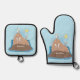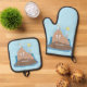 Funny happy walrus cartoon illustration oven mitt & pot holder set