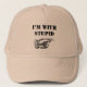 Choose your favorite color of this funny hat with text: "I'm with stupid" and pointing hand.