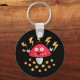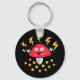 Heavy metal keychain with a funny cartoon mushroom making the hand sign of the horns and lightnings and flowers all around. Great gift for a punk pop rock music fan and a metalhead with a sense of humor.