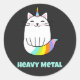 Funny heavy metal unicorn rainbow cat classic round sticker
