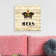 Fun funny "hers" text with a purple crown illustration on a vintage paper handwritten background.