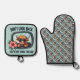 Funny Highland Cow Retro Western Motivational Art Oven Mitt & Pot Holder Set