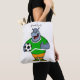 Funny hippo soccer player cartoon illustration tote bag