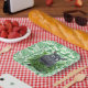 A Funny Face Hippo Paper Plate With A Pattern Of Falling Green Palm Leaves For A Kids Party