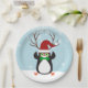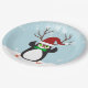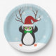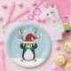 Funny Hipster Christmas Penguin with antlers Paper Plate