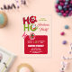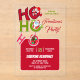 Funny HO HO HO Retro Christmas Party Invitation, features a retro handwritten typography "HO HO HO" with Christmas cartoon characters: Santa claus, snow men & teddy bear, isolated on red background with white snowflakes.