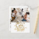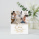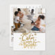 Funny Rarely Calm Always Bright saying in gold foil hand lettered brush script holiday postcard with one photo on front and one photo with your message and names on back. This postcard will be a keeper and people are going to love it.