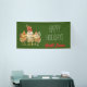Our delightful holiday banner features a trio of chickens with holiday light string, along with customisable text on green background.