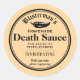 These humourous stickers say Blisterman's Homemade Death Sauce, and some other things that make it look like a Victorian-era old medicine bottle label. There is a black and white chilli pepper.