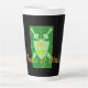 Funny mediaeval style crest latte mug design for pickleball players has crossed swords on shield with pickleball court, and "House of Dink" gold text on black background