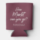 Great keepsake for the girls who are a part of your bachelorette party celebration. The "How Merlot can you go?" quote can coolers are personalised for your bachelorette party celebration and are perfect for the women who love to dance and drink wine. The front side is personalised with the name of the bride - to - be and the backside can be personalised with the name of the friend or family member.