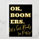 Boomers birthday party. Invite your friends with this humourous "ok, boomers. let's get ready to party!" birthday card. Add custom age and other information. There is also an optional text box for additional information or instructions. Add details like seventies attire required, be prepared for best Hawaiian t-shirt contest, ect. or delete that text box and stick with the other instructions like location, address, and rsvp information.