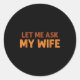 Funny Husband Let Me Ask My Wife Quote Humor Classic Round Sticker