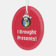This funny ornament features a penguin wearing a Santa hat and holding presents. Whether you're decorating your own tree or looking for a unique gift, this penguin ornament is sure to bring smiles and laughter to your holiday celebrations. Order today!