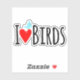 I love all of my birds and they inspired me to create this casual style, I Love Birds typography design. The text is black and it has a red heart and a small blue bird sitting on it. It's a funny design because if you look closely at the heart right under the bird, you'll notice that the bird pooped on it! Anyone that has pet birds can relate to this humorous design! It's shown here on a contour sticker. Select from more sticker sizes and finishes. Customize this design any way you prefer. Decorate packages, scrapbooks, folders, water bottles, and more for anyone that loves birds!