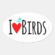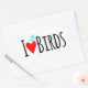 I love all of my birds and they inspired me to create this casual style, I Love Birds typography design. The text is black and it has a red heart and a small blue bird sitting on it. It's a funny design because if you look closely at the heart right under the bird, you'll notice that the bird pooped on it! Anyone that has pet birds can relate to this humorous design! It's shown here on a set of oval stickers, but you can select another sticker style and customize this design any way you prefer. Decorate packages, scrapbooks, folders, and more for anyone that loves birds!