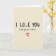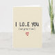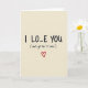 This Valentine’s Day card shares a sweet message with a clever twist. Centered on a soft beige background, the bold black text reads “I LO_E YOU,” instantly catching the eye. Just below, a smaller handwritten-style line adds humor with the words “(You’ll get the ‘v’ later),” turning the message into a lighthearted inside joke. A bright red heart sits beneath the text, drawn with gentle imperfections that give it a warm, heartfelt feel. The cream-toned background allows the lettering and heart to stand out beautifully. This card feels personal, affectionate, and fun, making it a lovely way to share love and anticipation with someone special on Valentine’s Day