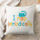 A fun and colorful decorative throw pillow featuring the funny quote "I nap periodically" and a cute sleepy cat design. Perfect to add a humorous touch to your couch or bedroom decor.