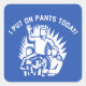 Celebrate life's small accomplishments with these funny square-shaped stickers. The blue sticker reads "I Put On Pants Today" in white text with an illustration of a victorious looking man be carried aloft on the shoulders of his friends. As long as the bar's not set too high you can totally crush it at this thing they call life.