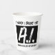 Luddites, AI developers/programmers, *and* AI testers, unite! Celebrate July 1 (International Joke Day), July 16 (Artificial Intelligence Appreciation Day) or September 12 (International Programmers' Day) with these funny paper cups, which feature the meme, "I Think I Broke the A.I. (and, in finer print, 'Curiosity Killed the ChatBot')" on one side and a multitude of (unanswered) questions on the other side, written in a grungy, marker-style font.