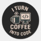 Funny I Turn Coffee Into Code Classic Round Sticker