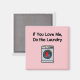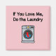 Shows a colourful washing machine and "If you love me, do the laundry" in hand-printed-style black text above. Are you fed up or tired of doing all the housework? Customise the pink background colour.